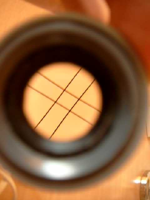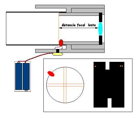 Cortamos la lente a un diámetro de 32mm o bien como fue en mi caso, como era demasiado pequeña, me busqué un arito que completara el diámetro de la lente hasta los 32mm. Ahora tenemos que medir la focal de la lente, ya que el retículo debe estar situado en el plano de la focal de la lente para que se vea nítidamente al mirar a través de él. Para ello proyectamos la imagen del sol a través de ella sobre una superficie blanca y la enfocamos. Esa distancia será la focal.