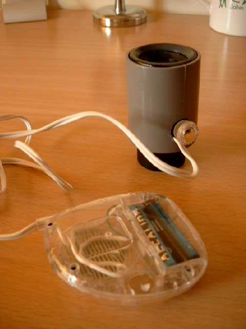 Ahora preparamos el led. Yo le puse el interruptor en el mismo ocular, pero después de hacerlo creo que hubiese sido más práctico y menos costoso dejarlo en el armazón de la radio de donde lo saqué. eso va a gustos. Ponemos los cables en las patitas y con mucho cuidado lo unimos todo y lo encajamos bien.