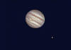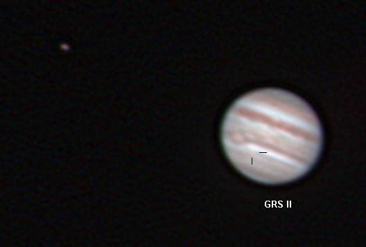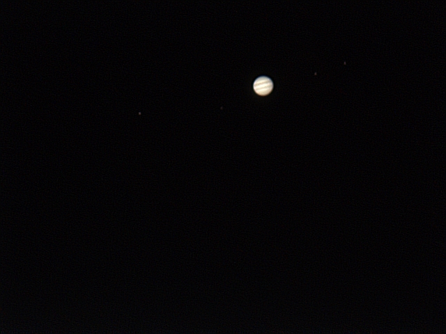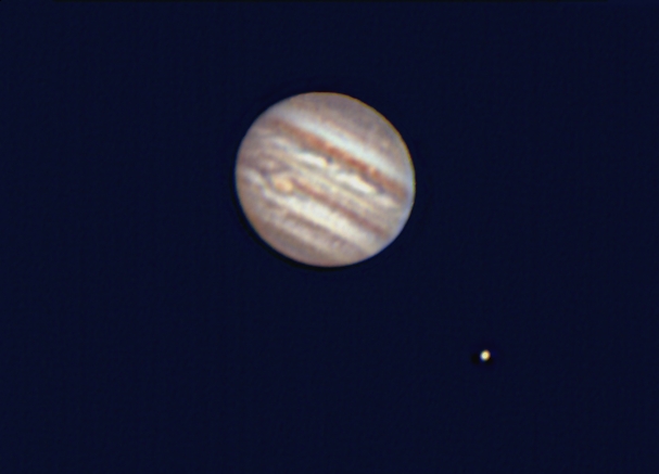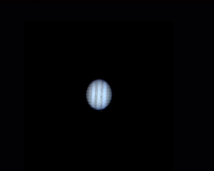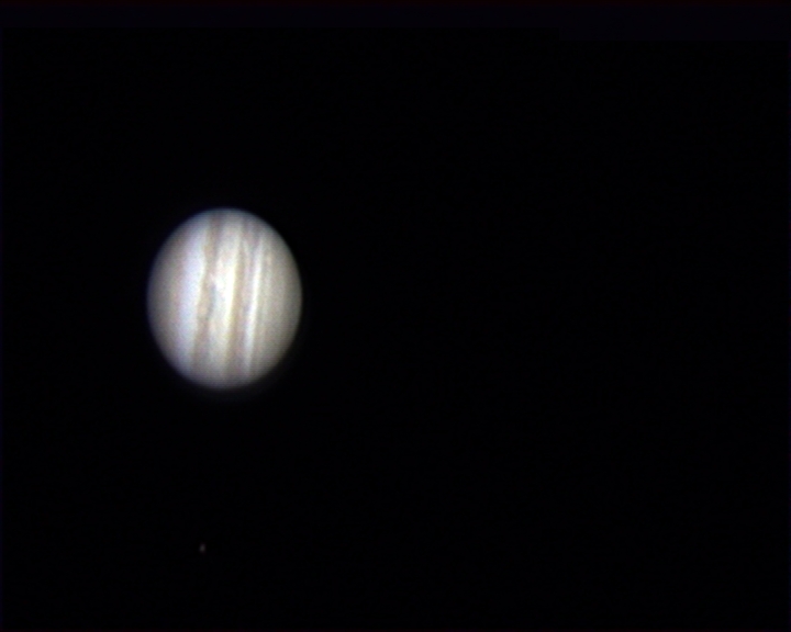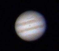 Foto de Júpiter tras procesar 120 segundos de video con Registax. El seeing era muy malo y había viente, pero es lo que hay. |