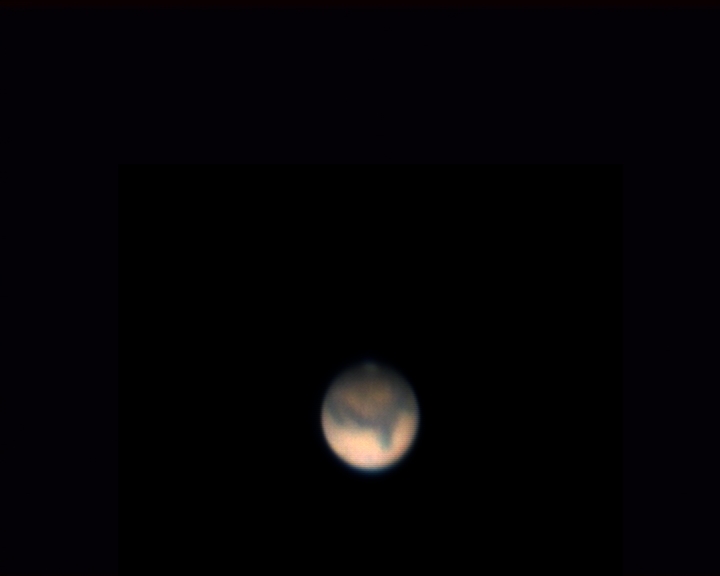 Foto de Marte a foco primario a las 23:40h resultado de procesar un video de 20 segundos con registax. |