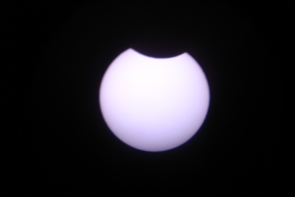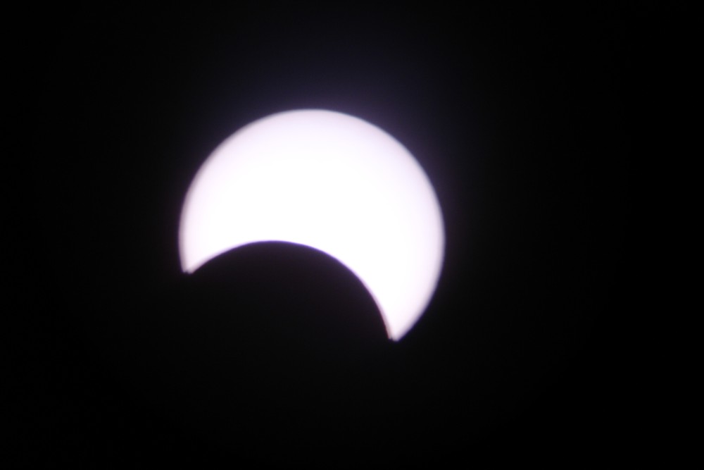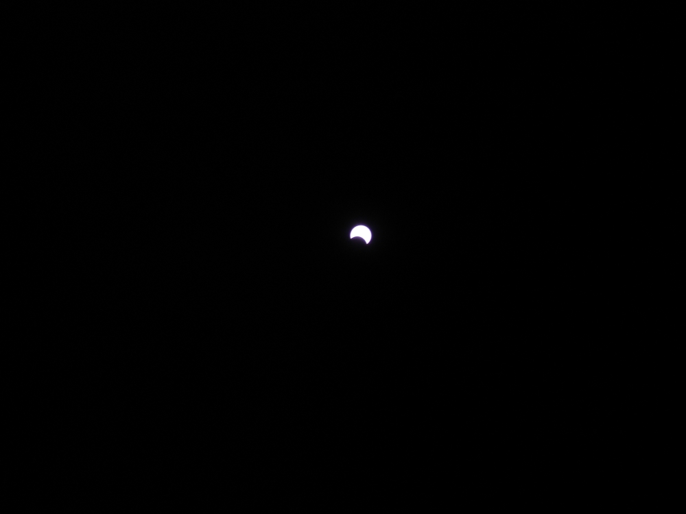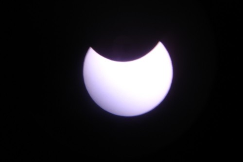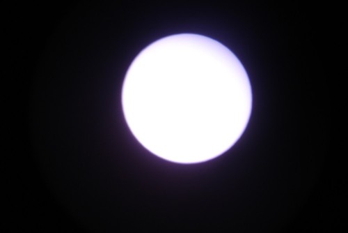 Fotos hechas desde Villena (Alicante) Todas las fotos menos la que se ve el cielo están hechas con el telescopio. Esta otra está hecha sin filtro solar. Las mismas nubes actuaron como filtro natural. Esta foto fue premiada en el concurso que organizó Coopervision. Haz click AQUÍ para ver este concurso. |